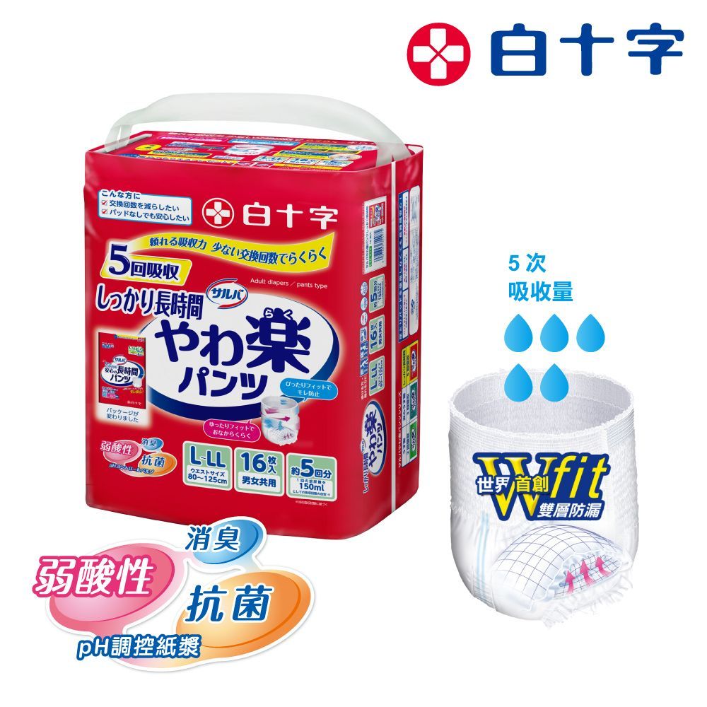 【白十字】全新雙層D超瞬吸防漏樂活褲L-LL(箱購48片/16片x3包-日本原裝進口)