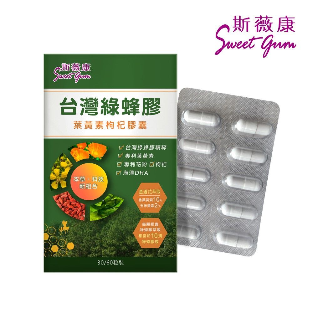 斯薇康台灣綠蜂膠葉黃素枸杞膠囊60粒x1盒(含台灣特有蜂膠素PPL+美國葉黃素+枸杞精華)